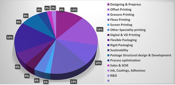 Printing Engineering Department was established in the year 1985 with undergraduate course. The Department has sanctioned intake of 60 students. PG Course in Printing Engineering started in 2009 and Post Graduate Research Centre in 2011. The department has qualified, experienced and dedicated teaching staff having PG qualification. Department has well equipped laboratories, with Pre-press, Press, Post-press, Testing and internet facility in each laboratory as per the requirements of SPPU and AICTE. Department emphasizes on effective teaching learning process with excellent teaching learning environment. The department has good association with eminent persons from both industry and academics. The department has recently started BE Honors Program in Advanced Packaging Technology. The syllabus of this Honors Program caters to recent developments in the field of packaging such as IOT, Smart Packaging, and Sustainability in Packaging and Brand management in Packaging. The inclusion of various subjects in the field of packaging will open up many avenues to students in the packaging and printing industry thus improving the employability of the students. Given below is the breakup of distribution of Core, Electives, Printing and Packaging subjects.