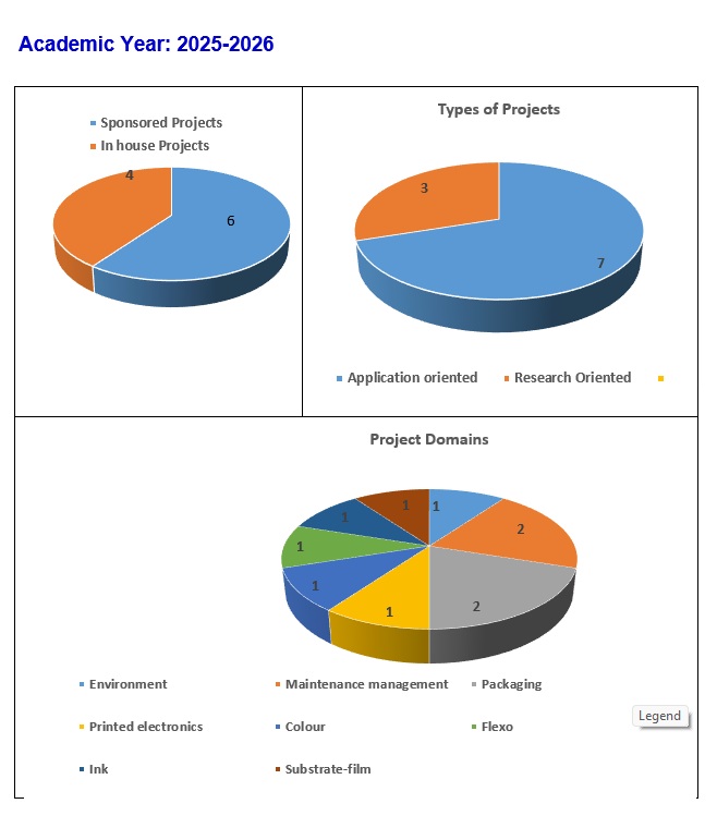 The growth of the packaging industry is almost at the rate of 22-25% per year. Today, the primary packaging materials are paper, wood, metal, glass, aluminium, foil, and plastic. Due to the growing awareness towards a sustainable future, the department is undertaking many recyclable and reusable innovative materials such as seaweed plastic, bagasse paper, jute paper, bioplastic, and their study. Looking at the future scope of Printed Electronics, the department organizes many sessions and workshops. The curriculum incorporates almost fifteen courses on Packaging Technology from the Second year to the Final Year. The department encourages many projects on printed electronics, color management, innovative package designing, and product innovation.