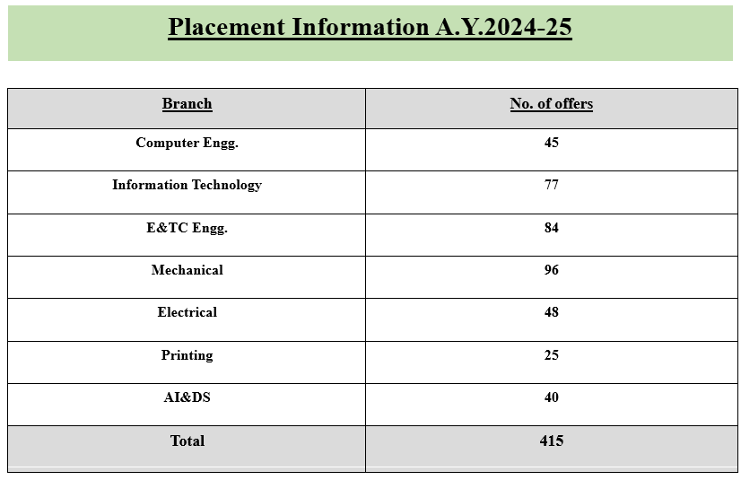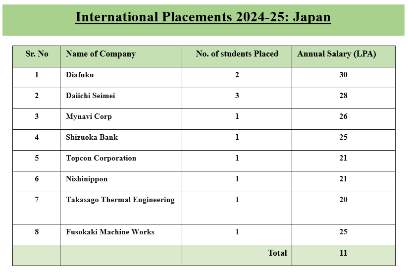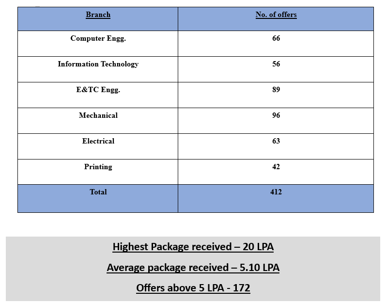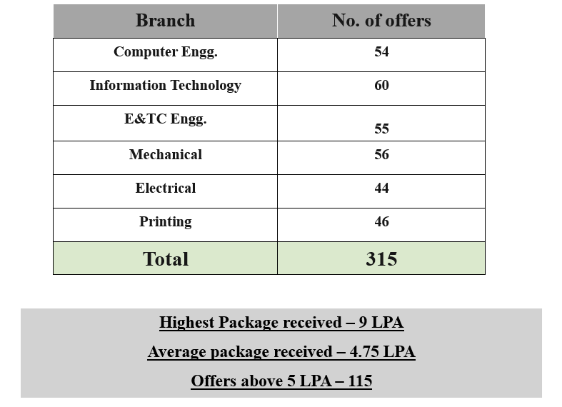 | Sr. No | Name of Company | No. of students Placed | Annual Salary (LPA) |